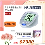 NISSEI "日本精密"手臂式電子血壓計DSN-10J日本製.保固3+2年,贈三樂事蒸氣罩/6入